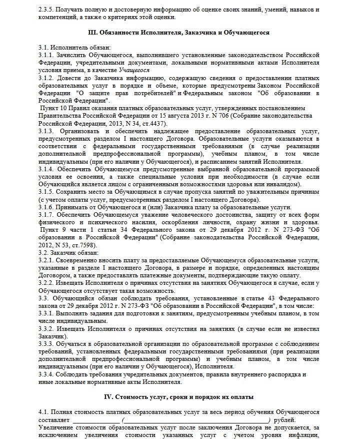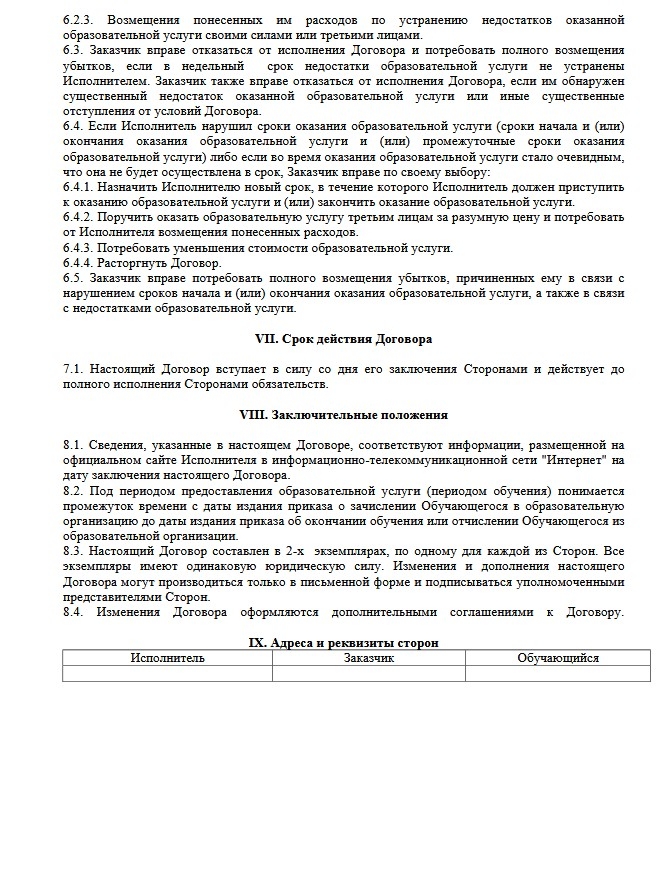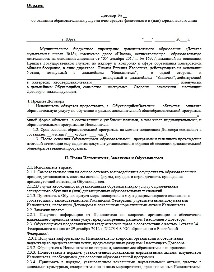 10. Образец договора об оказании образовательных услуг за счет средств физического и (или) юридического лица