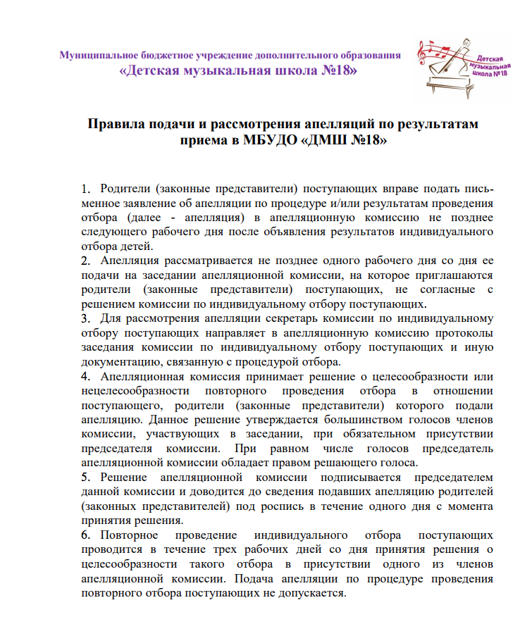 12. Правила подачи и рассмотрения апелляций по результатам приема в образовательную организацию
